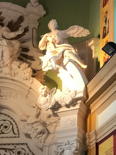 L’interno è molto semplice, dietro all’iconostasi in mattoni campeggia un grande dipinto della Madre di Dio da bambina con la Madre Sant’Anna; inoltre ci sono altre icone quali: San Pietro e Paolo e la deposizione di Cristo.
